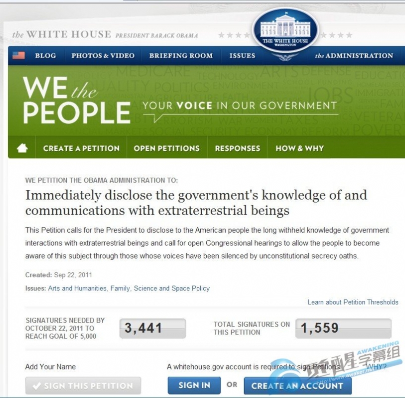 白宫开启外星人大揭露请愿投票,需5000票美国政府就会回应!